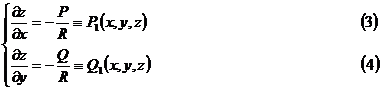 设完全可积条件(2)成立.为了构造积分曲面,把z看成x,y的函数(设R(x,y,z)≠0),于是原方程化为