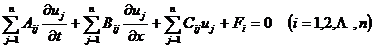 [一阶线性偏微分方程组的一般形式] 两个自变量的一阶线性方程组的形式是