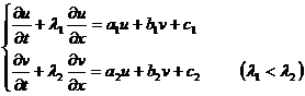 This is a linear equation system about the independent variables u, v . In this way, the solution of the quasi-linear equation system is transformed into the problem of solving the linear equation system . And the solution of the linear equation system satisfying the conditions , in ( x, t ) The image on the plane is the solution of the original quasi-linear equation system .![]()