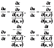 The solution of the system of equations u=u ( x,t ), v=v ( x,t ) . x,t can be expressed as a function of u,v , and