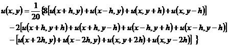 [迭代法解差分方程] 在五点格式的差分方程中,任意取一组初值{uij},只要求它们在边界节点(i,j)上取以已知值(xi*,yj*),然后用逐次逼近法(也称迭代法)解五点格式: