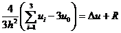 [用调节余数法求节点上解的近似值] 以差商代替Δu时,用节点(i+1,j),(i-1,j),(i,j+1),(i,j-1)上u的近似值来表示u在节点(i,j)的值将产生的误差,称此误差为余数Rij,即