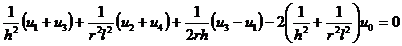 即任一节点(i,j)上uij的值等于周围相邻节点上解的值的算术平均,这种形式的差分方程称为五点格式,在边界节点上取