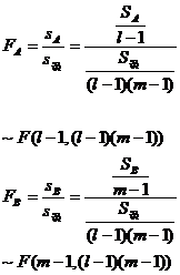 Consider the influence of two factors A and B. A is divided into l grades A 1 , A 2 , ··· , A l . B is divided into m grades B 1 , B 2 , ··· , B m under the condition of two factors A i j (that is, A i and B j are required to make lm kinds of cooperation in each test) for n trials, get lmn data . the assumed distribution , testing the effect of A or![]()