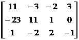 The solution system of equations is represented by a matrix as: