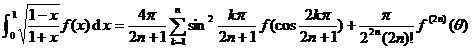 is the quadrature node (the root of the corresponding orthogonal polynomial), ( k =1,2, … , n ) is the quadrature coefficient . When f ( x ) is a polynomial not exceeding 2 n - 1 degree, the above quadrature formula (1) becomes an equation .![]()