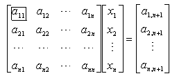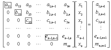 中找出主元素,不妨设为主元素,将第n个方程乘以与第n个方程相加,得到新的n阶线性方程组,用矩阵表示如下