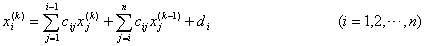 xn代入第n个方程,解出,再将 xn代入第n个方程解出...,最后将已解出的x2x3...xn代入第一个方程解出x1.