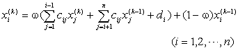 其他步骤同简单迭代法.上式中w 是常数,称为松弛因子.适当选取w 可以提高收敛速度,通常w 取为1.5~2(当取w Î (1,2)时,称为超松弛迭代法,当取w Î (0,1)时,称为低松弛迭代法).