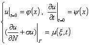 式中N为Γ的外法线方向,φ(x),ψ(x)为D上的已知函数,