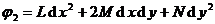 ds2=Edx22fdxdy+Gdy2 式中 E=1+ F= G=1+ ds为点M(x,y,z)处的弧的微分,ds2称为第一基本二次型,E,F,G称为第一基本量 ds2= 式中 E= F= G= 第一基本量E,F,G都在点M处取值. 曲面上每点(奇点除外)的第一基本二次型是正定的,即 E>0,G>0,EG-F2>0 |