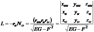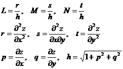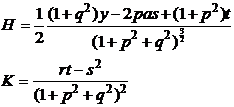 式中E,F,G为曲面的第一基本量,L,M,N为曲面的第二基本量。