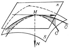 [测地曲率与贝尔特拉米公式] 设M为曲面S上一点,C为S上通过点M的一条曲线,