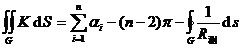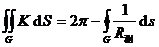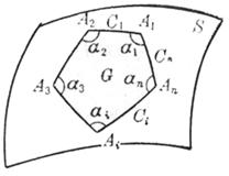 [高涅-波恩涅公式] 设G为曲面S上一个单连通区域,G的边界C是一条逐段光滑并无自交点的闭曲线,其运行的方向是使G总是在它的左侧.