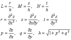 式中E,F,G为曲面的第一基本量,L,M,N为曲面的第二基本量。