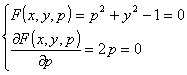 [p-判别曲线法]  对于一阶微分方程,令,那末方程的奇解一定包含在下面方程组
