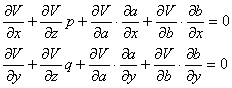 利用常数变易法把a,b看作x, y的函数,将V (x,y,z,a,b)=0求关于x, y的偏导数,得