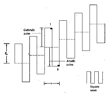voltammetry, an alternating (positive, negative, positive, negative….) wave