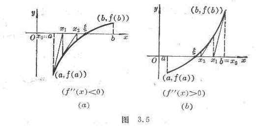 Let f ( x ) be continuous on [ a , b ] and also be continuous, and 1 0, 1 0 , f ( a ) f ( b )<0 (let f ( a )<0, f ( b )>0 ) , through the point ( a , f ( a )) (or the point ( b , f ( b ) ) ) as a tangent to the curve: