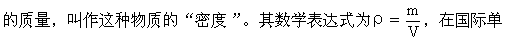 密度】某种物质的质量和其体积的比值,即单位体积的某种物质