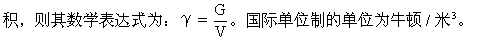 比重】物体的重力和它的体积的比值,即单位体积的某种物质的重力,称作该物体的“比重”。用γ表示比重,G表示重力,V表示体