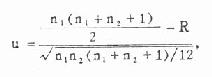 先将本表10.2中两组数据各自排队并统一编秩号,结果见表10.4。 较小样本为铅作业工人组,n1=8,R=99,代入式(10.6) R'=8(8+9+1)-99=45 R与R'两者中以R'较小,故以P'值与附表13数值比较,得R0.05=51,R0.01=45;今R'=R0.01,故P=0.01,在α=0.05水平上拒绝H0,接受H1,差别显著,故铅作业工人尿铅值比健康人高。 计算法步骤: 两组资料比较时,也可用计算法。用计算法时,对两组数据各自排队、统一编秩号同查表法,不同的是求得秩号之和以后计算,公式是: