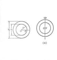 面积 式中 t=R-r为环宽, 重心 G与圆心O重合 转动惯量 转轴在图形平面上,且通过G点 (图(a)) |
