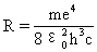 由玻尔假设而推出的上式,当k为2时,与氢原子光谱巴耳末系的里德伯公式完全相同,且R的理论值可由式