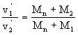 式中的v′为反冲核速度,v为中子的初速度,Mn为中子的质量,M为反冲核的质量。在中子速度相同的情况下,质量为M1和M2的两个不同的反冲核的速度v′1和v′2之比为
