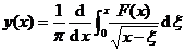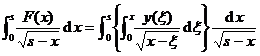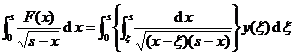 The Volterra integral equation is called the Abelian integral equation. The integral equation ( 1 ) can be solved by an indirect method under appropriate constraints on the given function F ( x ) . ( 1 ) is divided by ( s is a parameter), and then integrated on both sides, we get![]()