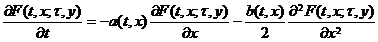 [ Kolmogorov's first equation ]  If the partial derivative of the conditional distribution function F ( t,x ; τ , y ) of the diffusion process