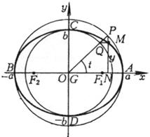 ( parametric equation, t is the angle between the radius of the concentric circle ( radius a , b ) corresponding to point M and the positive direction of the x -axis )