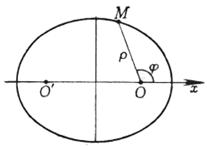 ( Polar coordinate equation, the pole is located at the focus of the ellipse, the polar axis is the ray from the focus to the nearest vertex, j is the polar angle, p , e are as described above )