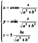 In the formula , is the angular velocity, h is called the pitch, and is called the helix angle. In the formula, the positive sign is taken for the right helix and the negative sign for the left helix. If the arc length s is used as the parameter, the equation is:![]()